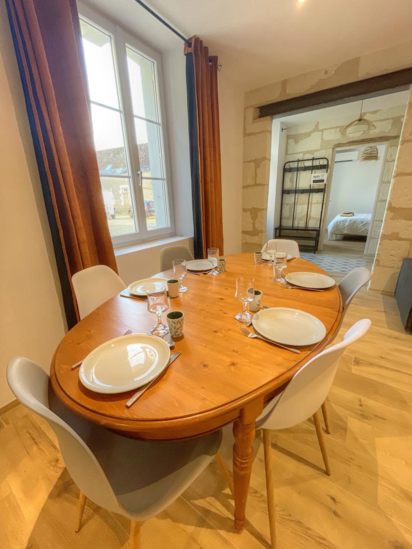 Dieses charmante, lebhafte Dorf am Ufer des Cher genießt eine unglaubliche Lage in der Nähe der größten Renaissance-Schlösser, des Zooparks von Beauval und der tausendundeinem Reichtum der Touraine. Ihr Ferienhaus ist das Symbol des Willens von Léonie und Yann, ein Familienerbe fortzuführen, ein schönes, typisches Haus aus Tuffstein, das wunderschön restauriert wurde. Es lag ihnen am Herzen, Ihnen einen komfortablen, subtil dekorierten Ort anzubieten, indem sie alte Steine mit aktueller Dekoration verbanden. Die Familiensuite im Erdgeschoss, die beiden Cocooning-Zimmer im Obergeschoss und die beiden Badezimmer werden Ihnen das nötige Wohlbefinden für einen gelungenen Aufenthalt bieten. Die Terrasse und der große Hof werden Ihren Urlaub oder Ihr Wochenende in einzigartige Momente verwandeln