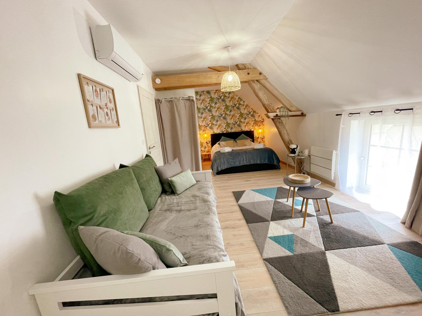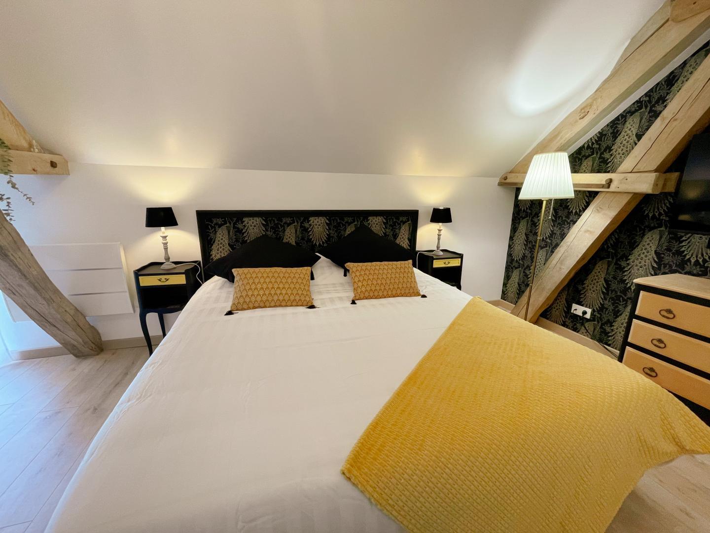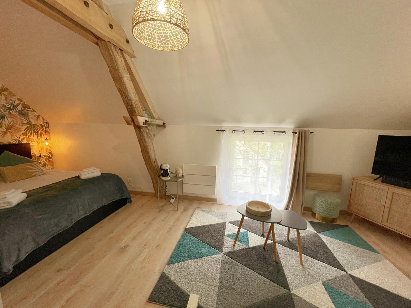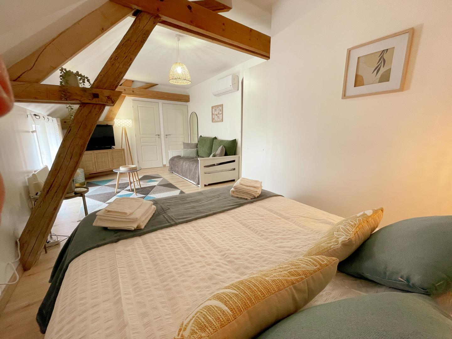 Die Touraine, ihre Juwelen, aber auch ihre Geheimnisse werden enthüllt… Ihr Zimmer ist die perfekte Synthese aus einem erstklassigen Empfang, den Ihnen Arnaud, ein leidenschaftlicher Anhänger seiner Region, bereitet, und einem Komfort, der auf Geräumigkeit, Ruhe und Charme ausgerichtet ist. Jedes Zimmer verfügt über ein eigenes Badezimmer mit separatem WC, und um den Komfort noch zu steigern, runden der Wohnbereich und das Ambiente den privilegierten Moment des Frühstücks in der Domaine du Bois Joubert ideal ab. Das Anwesen ist ideal für Paare und Familien und bietet einen riesigen Garten, in dem man sowohl die wohlverdienten Momente des Nichtstuns als auch die zahlreichen Spiele im Freien genießen kann, die Groß und Klein lieben und die bei den ersten Sonnenstrahlen zugänglich sind. CheGesprochene Sprachen:Englisch