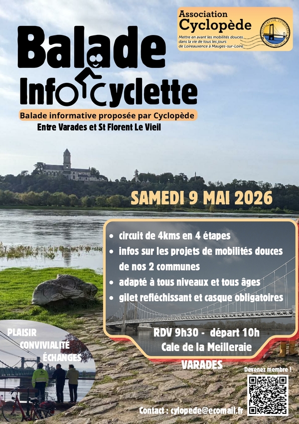 Der Verein Cyclopède, dessen Ziel es ist, die sanfte Mobilität im Alltag in den Gemeinden Loireauxence und Mauges-sur-Loire hervorzuheben, organisiert am Samstag, den 9. Mai 2026, einen informativen Spaziergang.