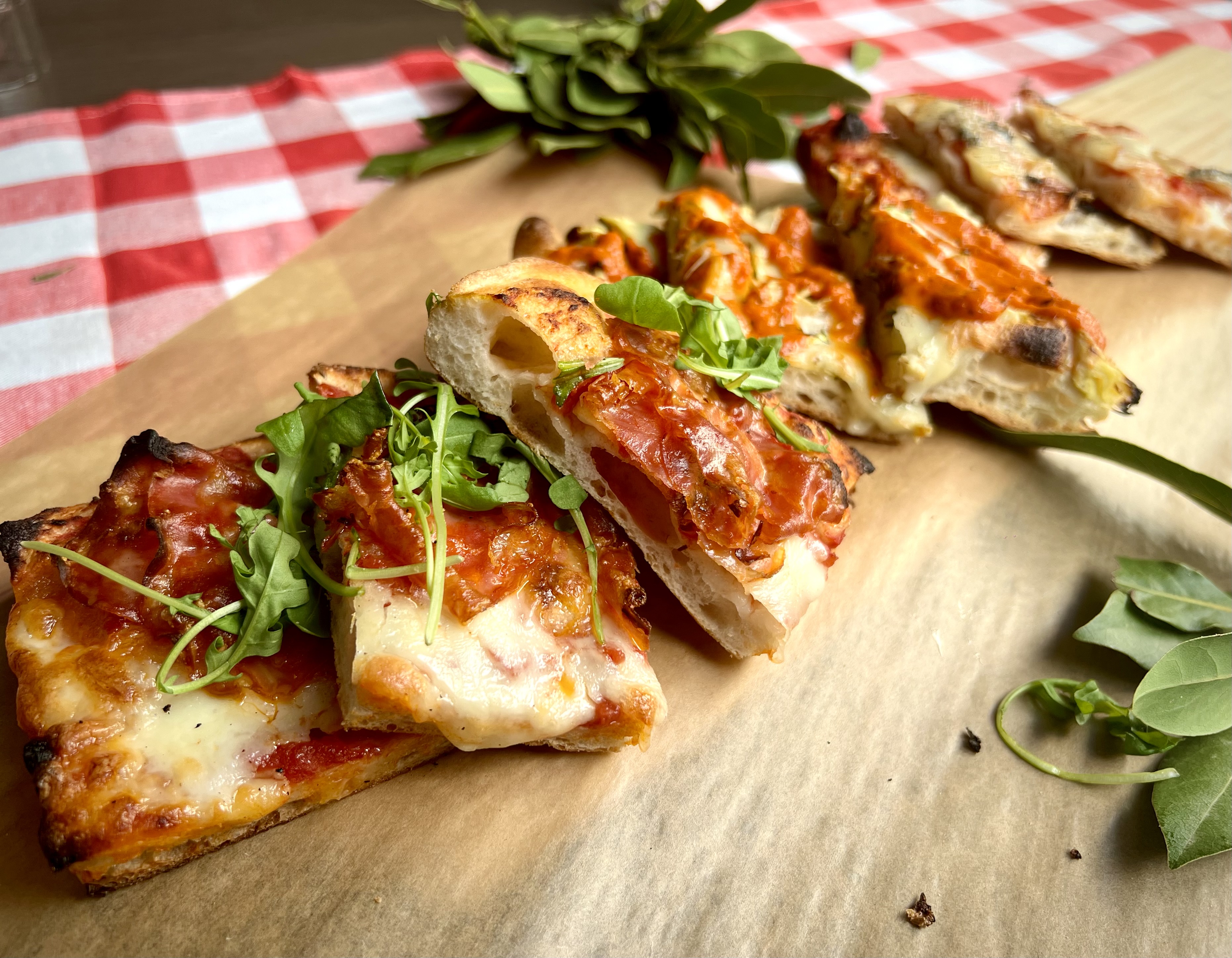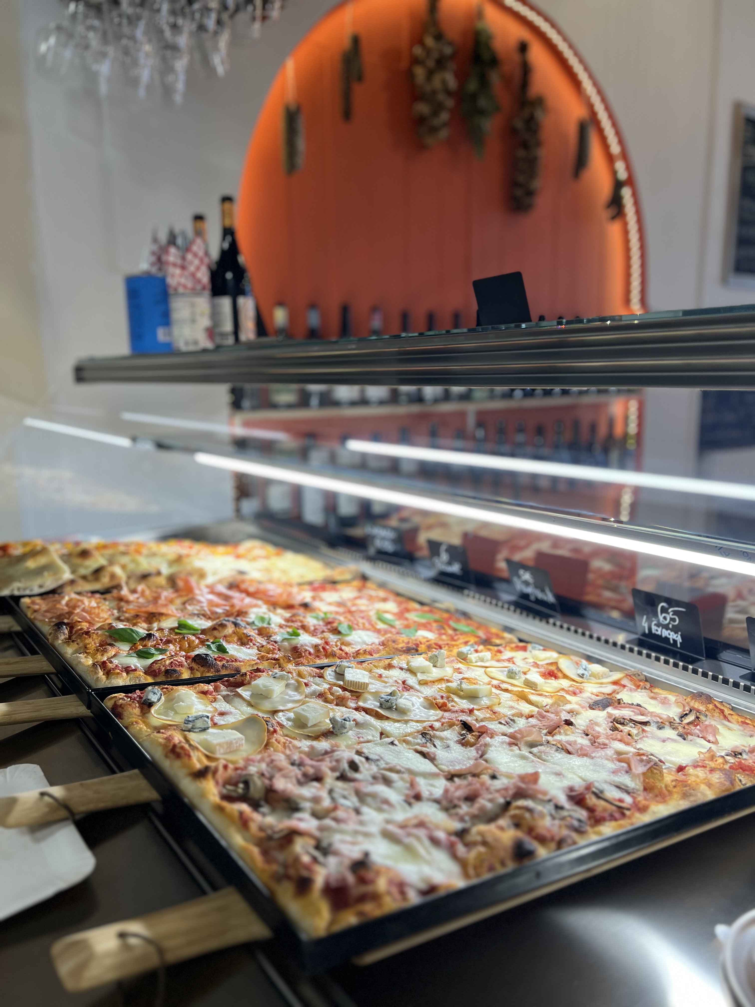 Pizzeria, die sich auf Pizza in teglia romana (Pizza am Stück) und Pizza fritta (im Ölbad gebacken) spezialisiert hat, belegt mit frischen italienischen Produkten!