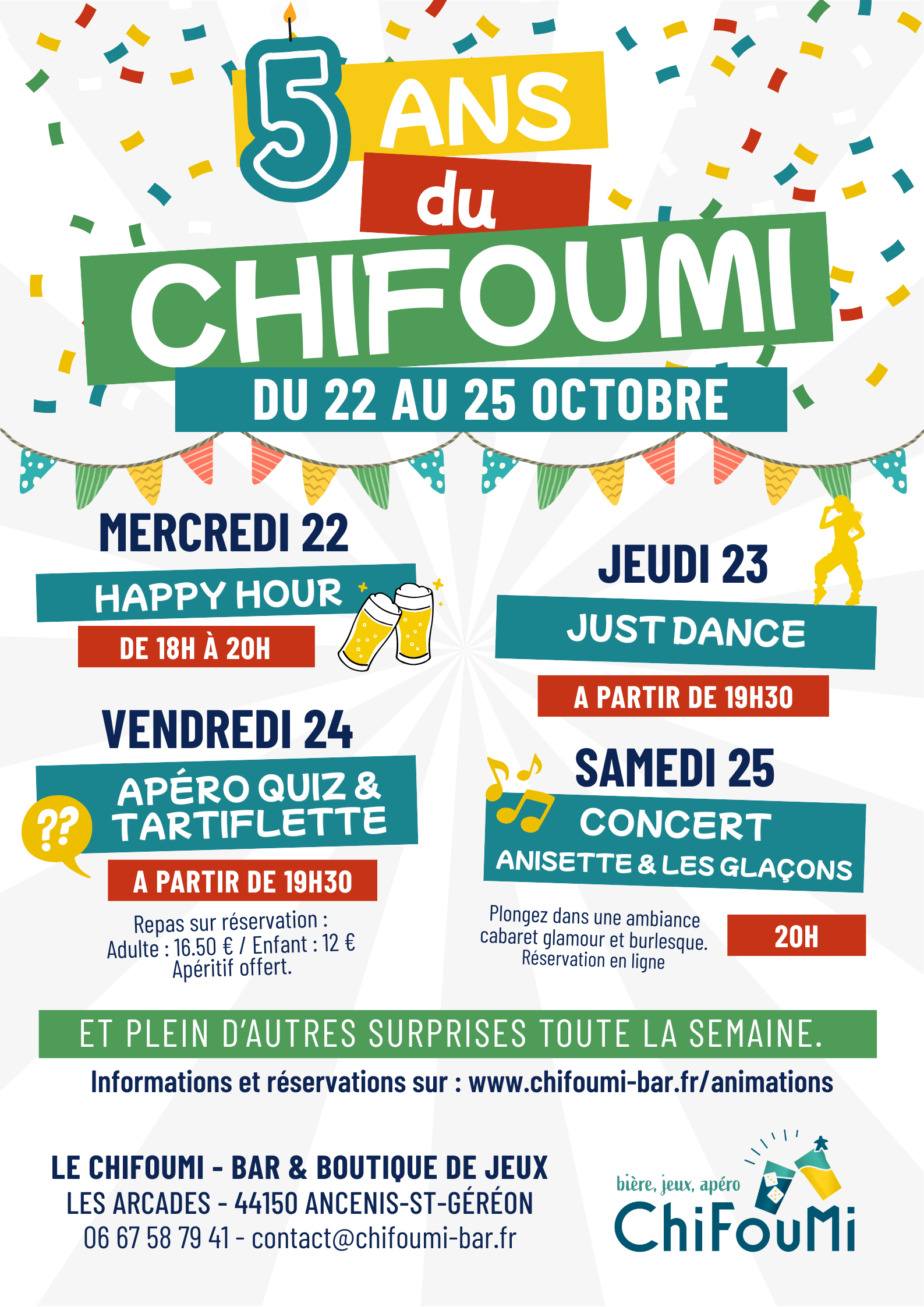 Am Mittwoch, dem 22. Oktober, ist Happy Hour in der Spielbar Chifoumi! Es ist Zeit, diese Bar zu entdecken, wenn Sie sie noch nicht kennen, oder von ihr zu profitieren, wenn Sie ein Fan sind!