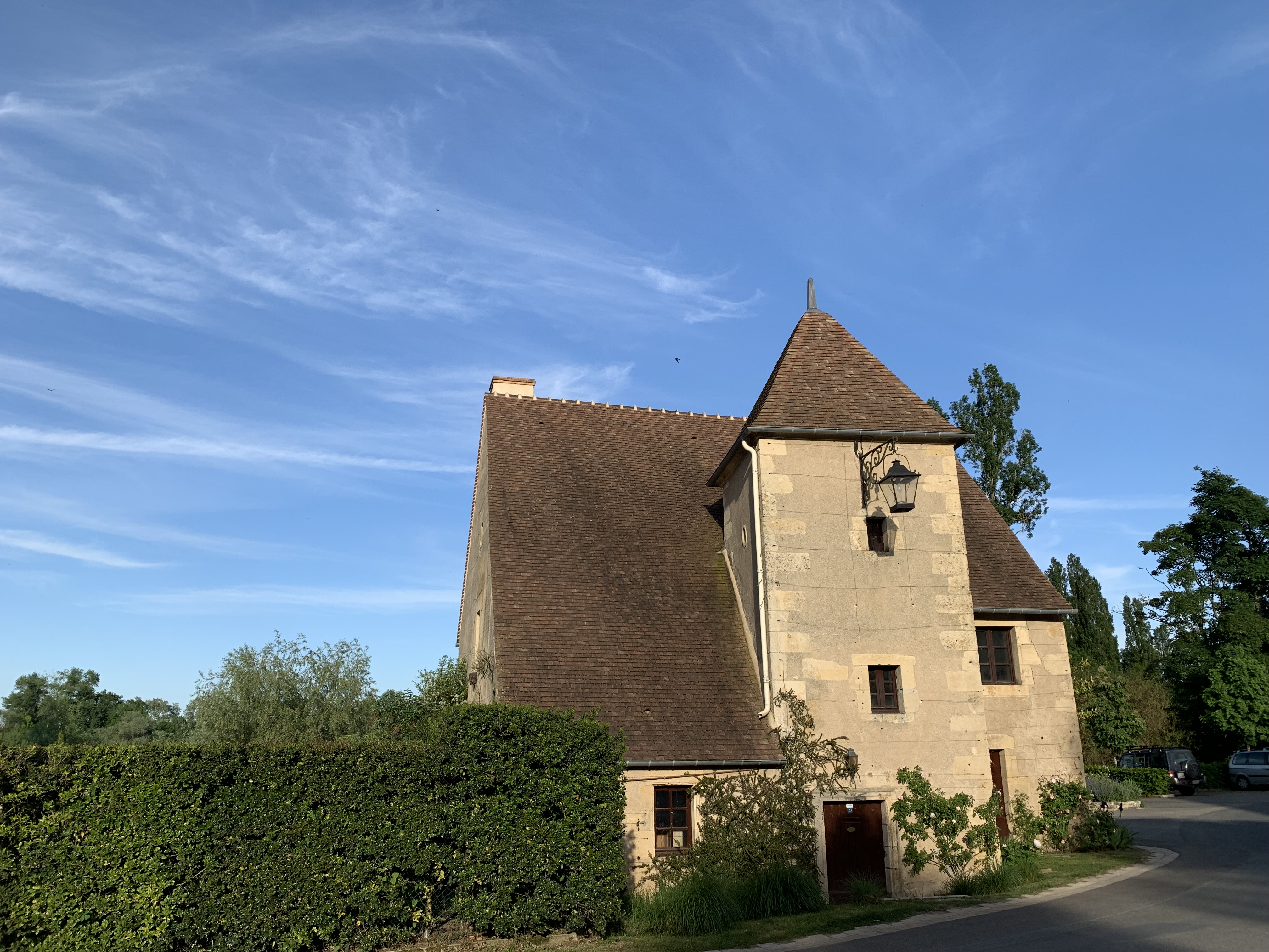 Dieses Haus wurde, wie viele andere im Dorf, regelmäßig vom steigenden Wasserstand des Allier überflutet. Die in den Stein dieses Hauses und vieler anderer Häuser im Dorf eingemeißelten Markierungen von sogenannten Jahrhunderthochwassern (1790, 1835, 1856, 18
