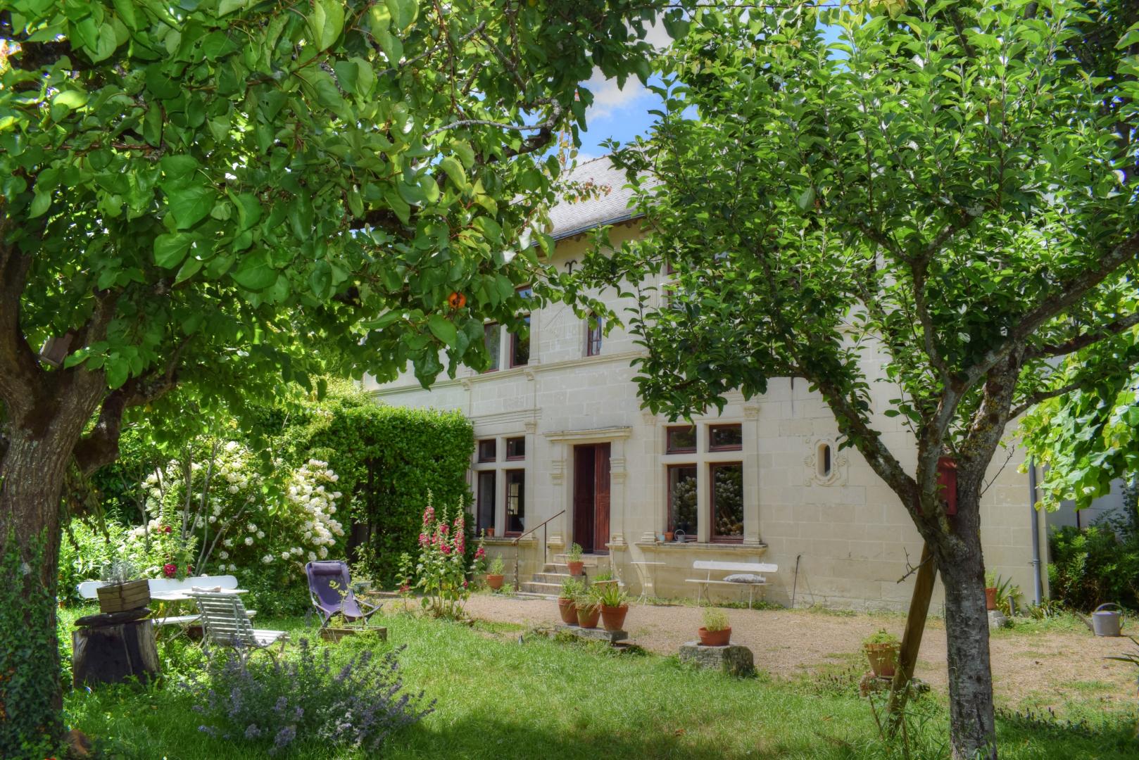 La Renaissance jolie longère tourangelle, ancienne guinguette dont les murs de son jardin clos donnent en balcon sur la Vienne, vous accueille dans un cadre authentique. Vastes pièces de vie avec cheminée. Die Fassade mit ihren Sprossenfenstern und Pilastern erinnert an die religiöse Geschichte des Dorfes Candes St Martin, die mit dem Heiligen Martin und dem Bischof von Tours im Mittelalter verbunden ist. Dieses hübsche Dorf am Zusammenfluss von Loire und Vienne schmiegt sich an den Fuß eines Hügels. Die schlanke Stiftskirche überragt zahlreiche Langhäuser, die in kleine Gassen münden, in denen Sie das von Weinbergen gesäumte Panorama, die Stadtmauern, die Ufer und Buchten der Vienne, die Schifffahrt und die Flora entdecken können.Von diesem privilegierten Ort aus haben Sie unmittelbaren Z