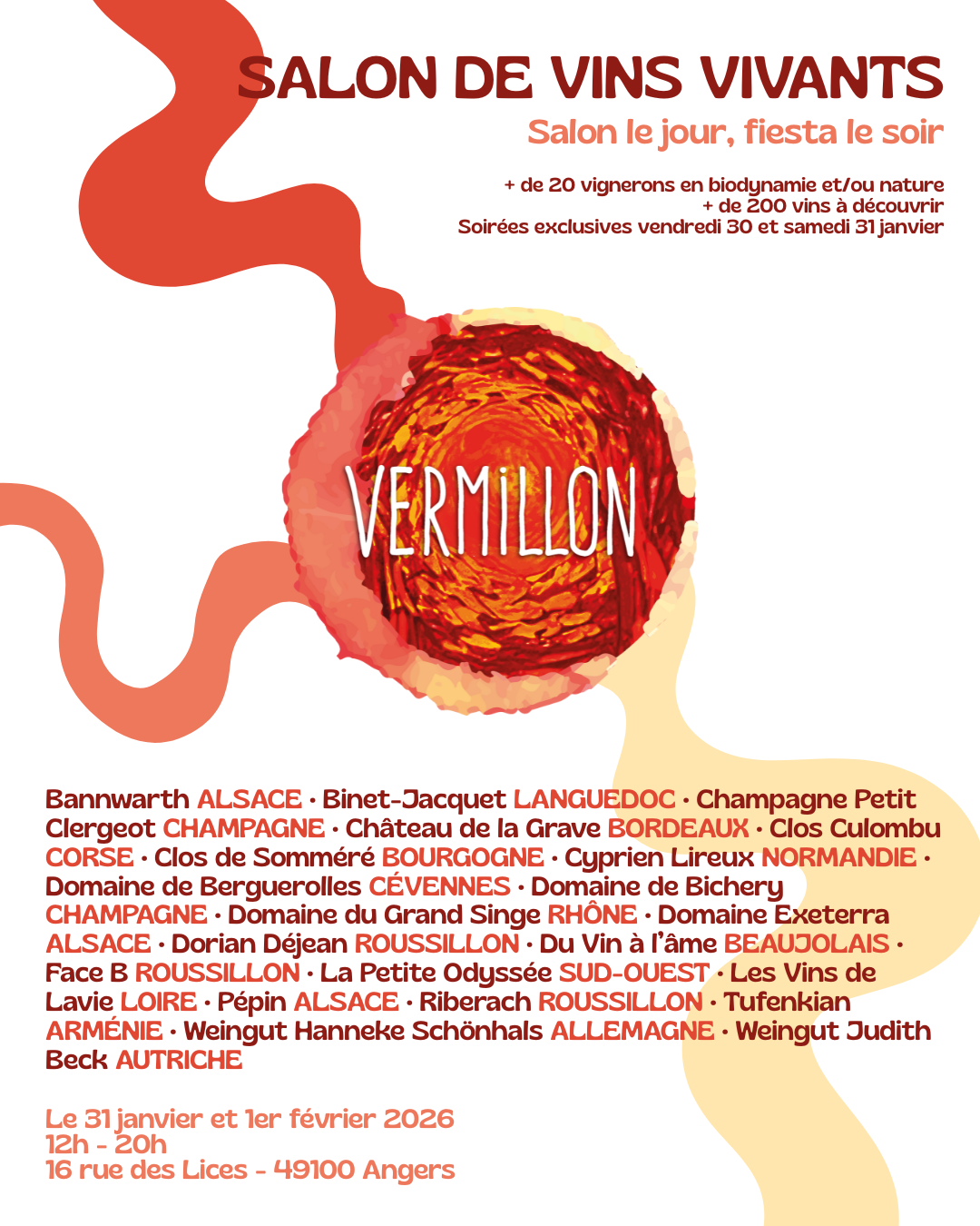 Fil d'ariane Startseite Fêtes et manifestations Salon Vermillon PRAKTISCHE INFORMATIONEN Preise Öffnungszeiten Dienstleistungen Verkehrsnetz location_onlokalisieren photo_cameraFotos PRAKTISCHE INFORMATIONEN Preise Öffnungszeiten Dienstleistungen Verkehrsnetz lokalisieren location_on Salon Vermillon 16 rue des Lices 49000 ANGERS mail_outline Mail anzeigen mail_outline contact@pepin.vin search Link anzeigen search https://www.salonvermillon.fr/ ZahlungsmittelKreditkarteMünzen Periode (n) Anfang Ende Öffnungszeiten Ruhetag 01/02/2026 - 01/02/202619:0022:00-- Mit öffentlichen Verkehrsmitteln beitreten