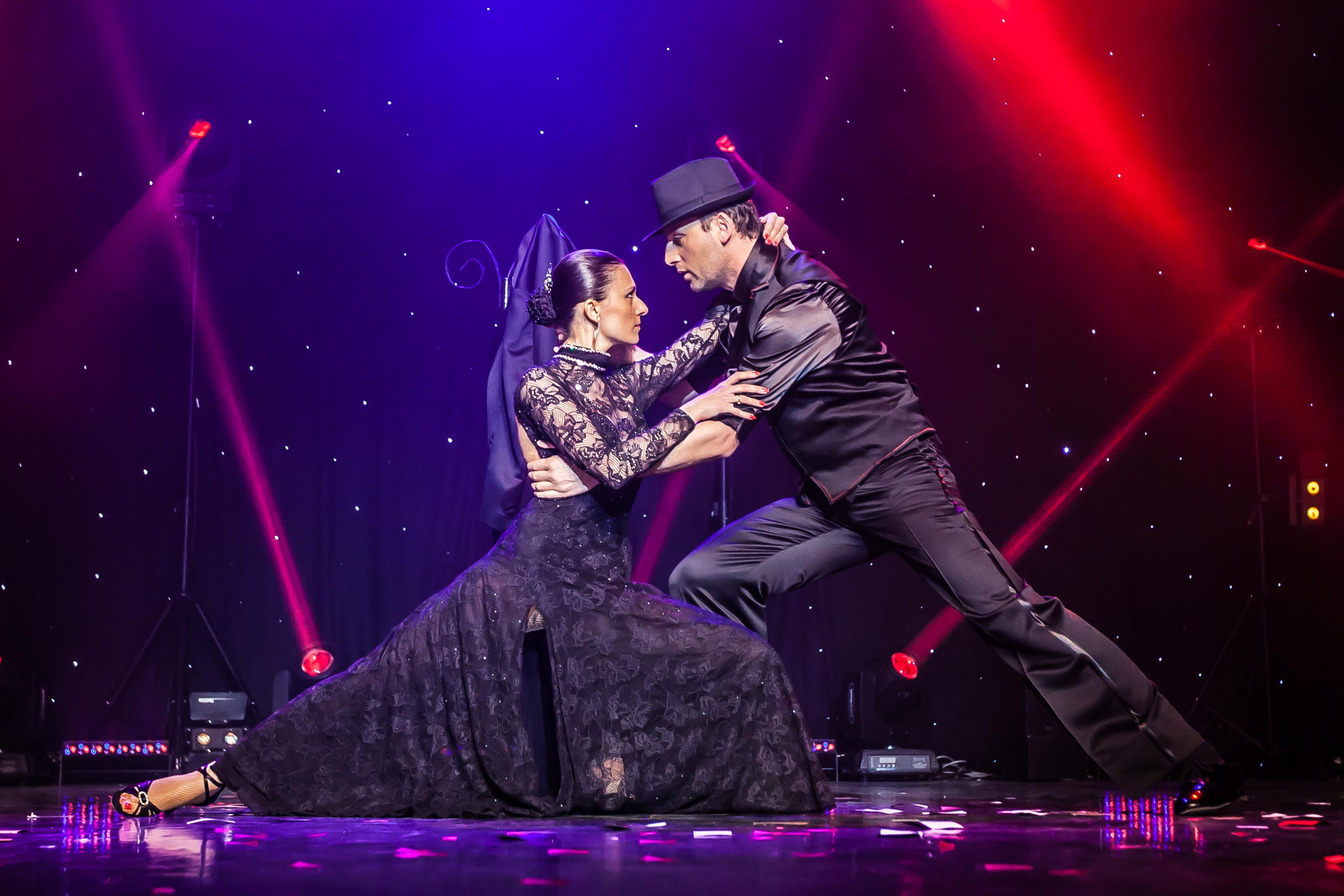 Weihnachtsshow im Maison de la Magie in Blois. Kenris Murat und Aurélia sind ein unumgängliches Duo, sowohl in der Stadt als auch auf der Bühne. Seit mehr als zehn Jahren arbeiten sie an ihren Nummern und hören nie auf, sie zu verbessern und zu verfeinern, um die visuelle Perfektion zu erreichen! Makellose Anzüge, schwarze Hüte, eine rote Rose im Mund für die Tango- und Zaubernummer, eine Dosis Absurdität für die komische Zaubernummer oder Silhouetten, die sich in der Schattenspielnummer verwandeln: Das Paar vereint hypnotische Anmut, Emotionen, Beherrschung und Präzision! Magie, Illusion, Tanz und Videoprojektion – ihre Show „Magie in Bewegung“ trägt ihren Namen zu Recht: ein faszinierendes und elegantes futuristisches Universum mit Hologrammen, Lichtspielen und DrohnenHausgruppen: