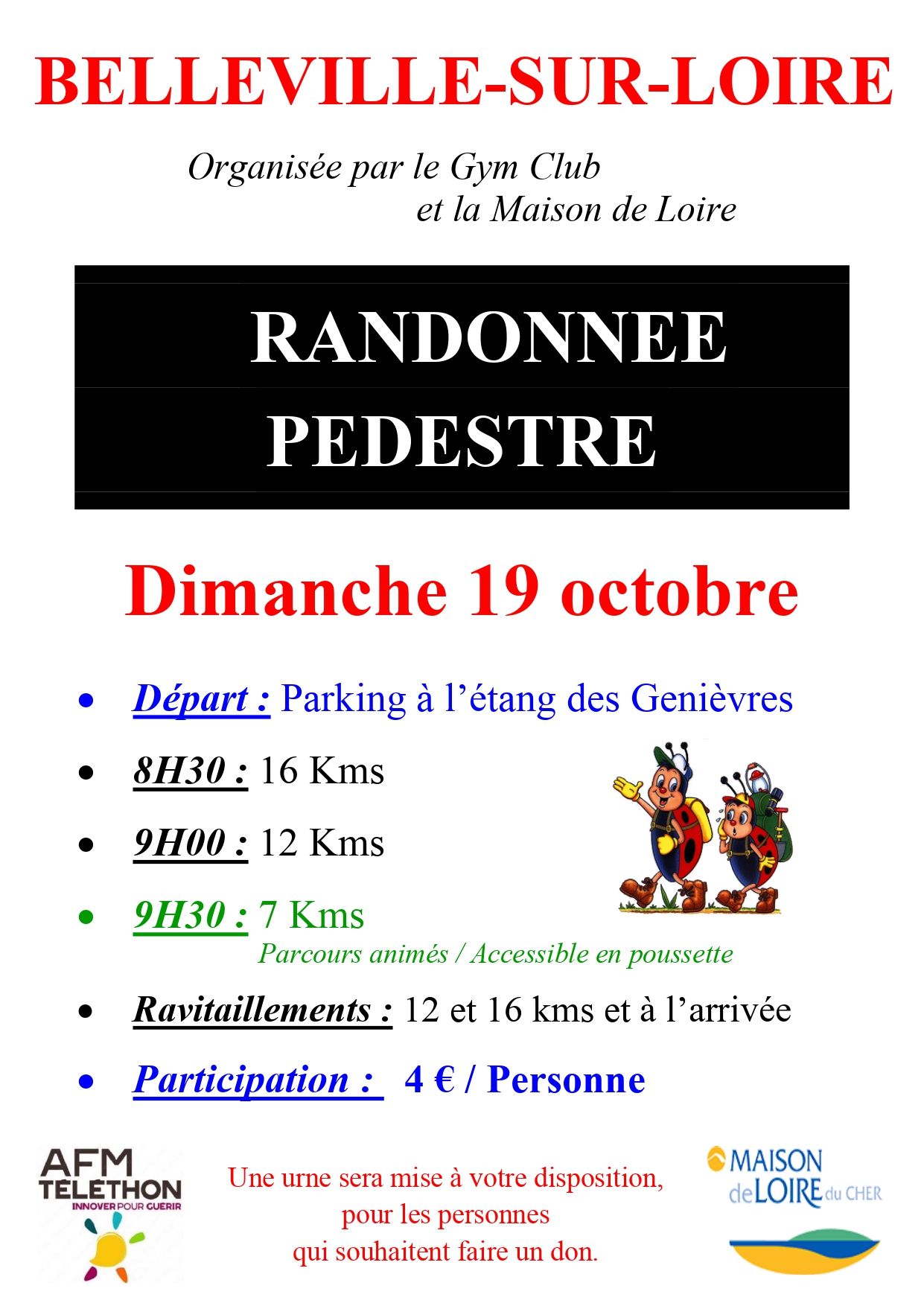 das Maison de Loire du Cher und Le Club de Gym laden Sie ein, an einer schönen Wanderung zugunsten des Telethon teilzunehmen.